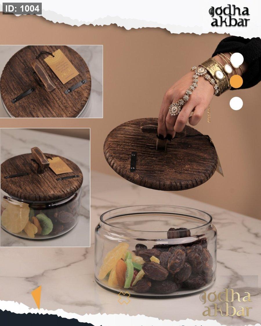 مضيفة زجاج مع غطا خشب (AFRICANO 12)