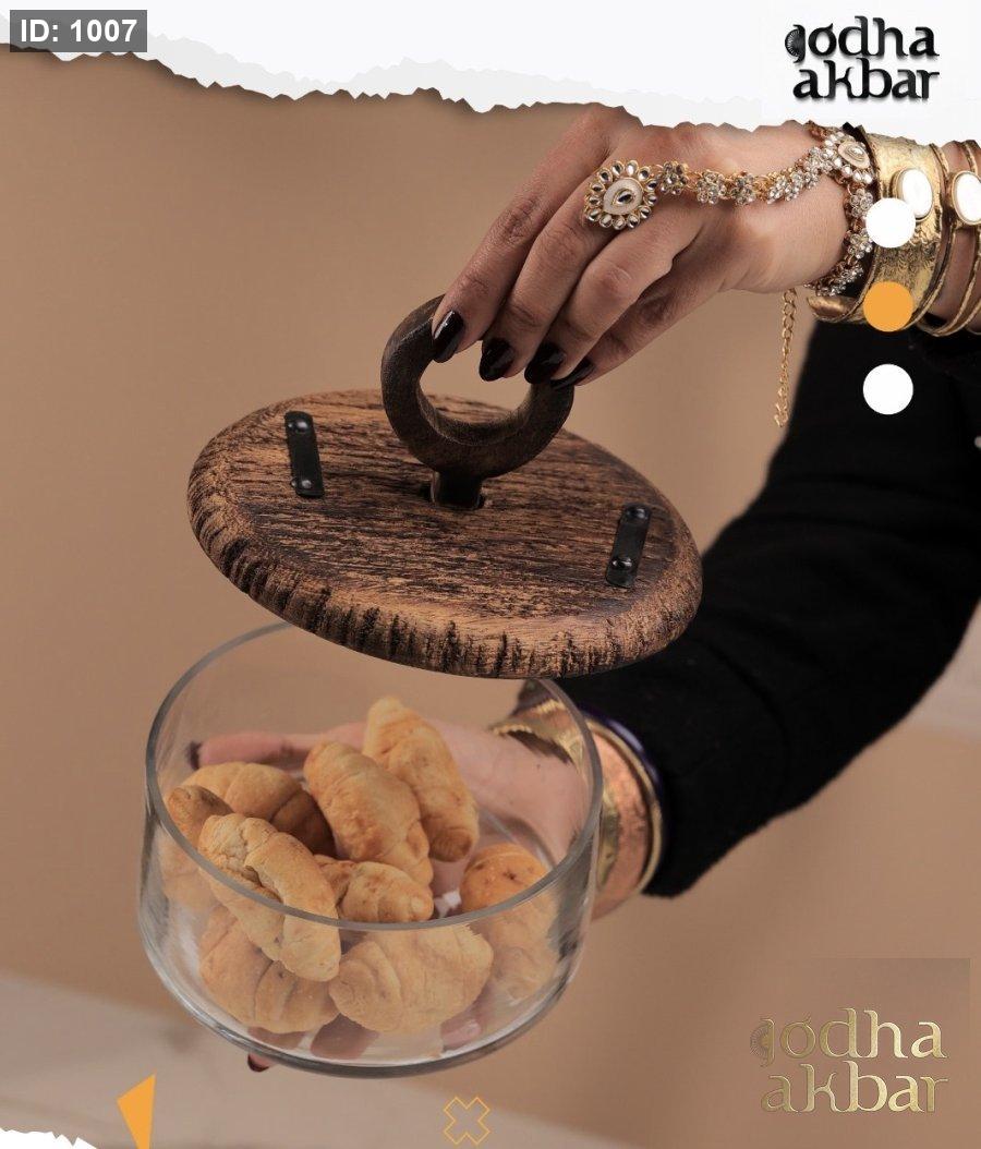 مضيفة زجاج مع غطا خشب (AFRICANO 16)